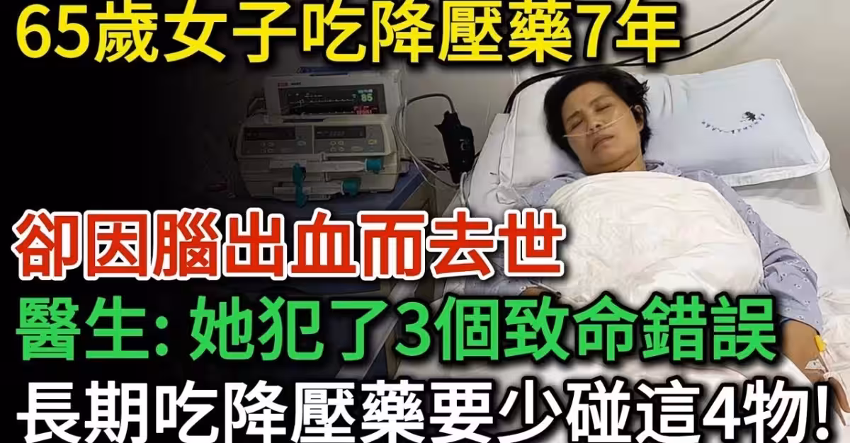 65歲女子吃降血壓藥7年,卻因腦出血而過世,醫生指出:她犯了3個致命錯誤!長期服用降血壓藥的人,盡量少碰這4種食物,不然後果很嚴重!