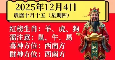 明日小運播報~2025年12月4日(星期四)農曆十月十五