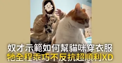 奴才示範如何幫貓咪穿衣服 它全程乖巧不反抗超順利XD