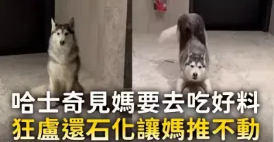 哈士奇見媽要去吃好料 狂盧還石化讓媽推不動