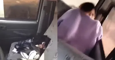 在車裡做運動忘了鎖車門,被經過的路人開門偷怕!