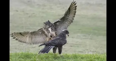 貓頭鷹捕抓老鷹,鏡頭記錄全過程