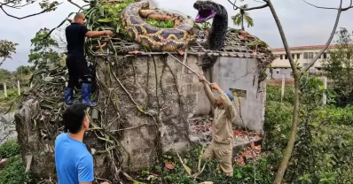 2 條巨蟒爬上屋頂產卵生存之王
