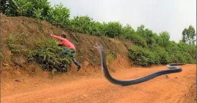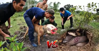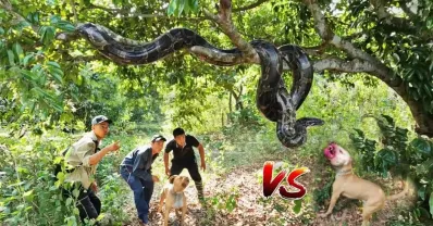 勇敢的鬥牛犬拯救被巨蟒吃掉的人生存之王