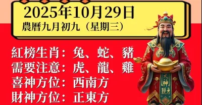 明日小運播報~2025 年 10 月 29 日(星期三)農曆九月初九