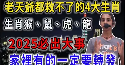不得了啦!老天爺也救不了的4大生肖,生肖猴、鼠、虎、龍2025必出大事,家裡有的一定要轉發!