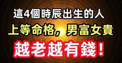 這4個時辰出生的人,上等命格,男富女貴,越老越有錢!