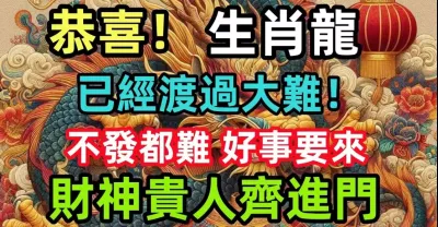 恭喜!生肖龍已經渡過大難!不發都難,好事要來,財神貴人齊進門
