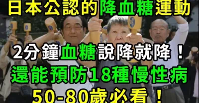 50-80歲必看!日本公認的降血糖運動,簡單到一學就會,2分鐘血糖說降就降!還能預防18種慢性病,糖尿病、高血壓、心臟病全都遠離你,難怪日本人最長壽!