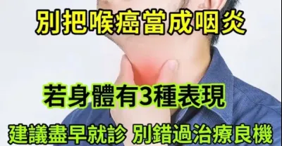 把喉癌當成咽炎,若身體有3種表現,建議盡早就診,別錯過了治療良機,後悔莫及