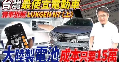 LUXGEN N7 台灣最便宜電動車實車拆解 陸制電池成本只要15萬 拆給大家看(上) 國產電動車是要準備鹹魚翻身還是繼續躺平 這集拆給大家看實際用料到底如何#luxgenn7 #台灣之光 #傑運汽車