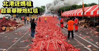 2022北港迓媽祖~太陽聯盟超豪華百尺鞭炮紅地毯,準備恭迎北港朝天宮祖媽聖駕!