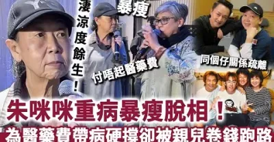 70歲朱咪咪重病暴瘦脫相!為撈救命錢帶病硬撐未退休,親兒卷錢跑路絕情唔管,晚年孤身臥病淒涼度餘生!