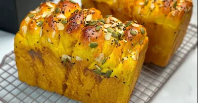 南瓜吐司 pumpkin loaf 南瓜色澤金黃,口味香甜, 吐司蓬鬆柔軟