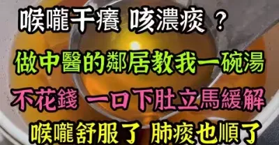 喉嚨干癢 咳嗽咳不出 痰粘稠,中醫生鄰居教我一碗湯,不花錢 一口下肚立馬緩解,肺痰順了喉嚨也舒服了
