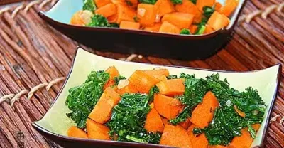 田園時光美食 羽衣甘藍炒紅薯(Fried sweet potatoes with kale)