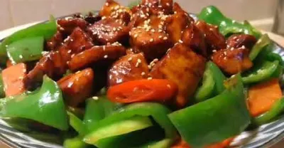 蔬食 (翠玉蜜豆乾) 蜜滋味芝麻香配上青脆口感 - Vegan 蔬房菜 Cuisine Taiwan 素食 (Sweet Pepper with Dried Bean Curd)
