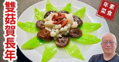 輕鬆年菜:雙菇賀長年_苦盡甘來,長命百歲,簡單容易,清爽好吃_章新素食年菜,開心上菜