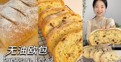 無揉面、無油版歐包!烤箱和空氣炸鍋都可以做!外脆里軟!做一次夠吃一個星期的早餐麵包!