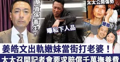 簡直系畜生!姜皓文出軌嫩妹當街打老婆,太太召開記者會「曝私下人品」,要求賠償七位數撫養費!