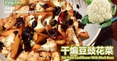 《干煸豆豉花菜 Stir Fried Cauliflower With Black Bean》菜花不加一滴水,僅靠煸炒而成的一道素菜。再加上豆豉,風味更獨特!