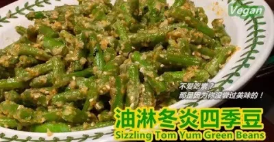 《油淋冬炎四季豆 Sizzling Tom Yum Green Beans》一道超級簡單,不煎不炸,香味濃郁,酸辣味的"四季豆"全素料理。