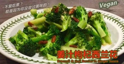 《薑汁枸杞西蘭花 Broccoli & Goji Berries In Ginger Sauce》清淡又健康的一道養生素菜。"姜"活血祛寒,"枸杞"清肝明目,"西蘭花"增強機體免疫力。[鍾Sir料理]