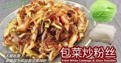 《包菜炒粉絲 | Fried White Cabbage & Glass Noodles》 比較常見的家常菜,清爽的包菜配上滑嫩的粉絲,口味俱佳。一道便宜、好做、好吃又營養的素菜。